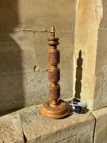 Kashmiri Hand-carved Solid Wood Table Lamp