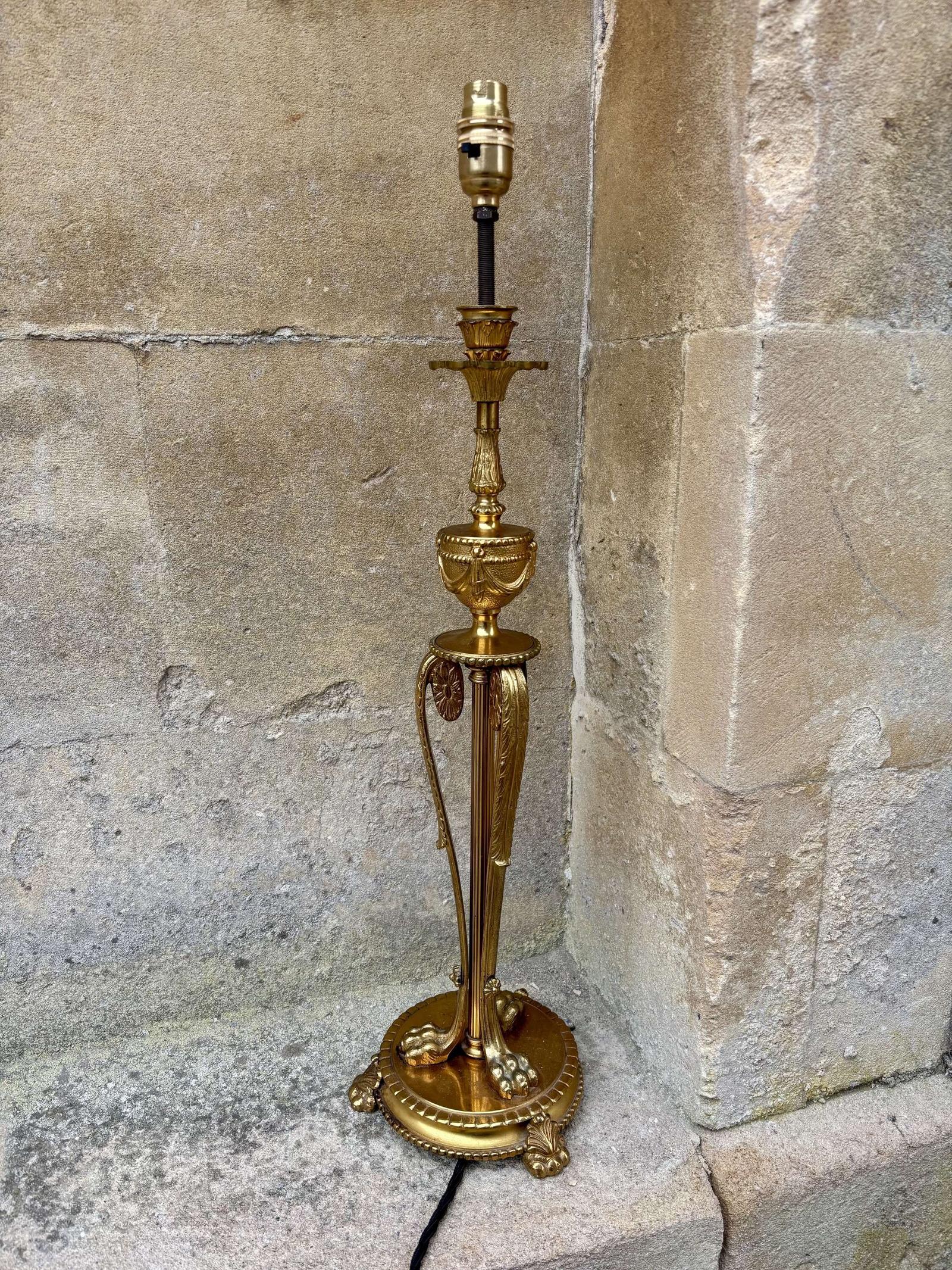 Add a touch of timeless elegance to your home with this fine Ormolu Table Lamp, beautifully detailed in the neoclassical style. Standing 65cm tall, it features finely cast gilded bronze with decorative acanthus leaf motifs, lion paw feet, and elegant reeded supports.